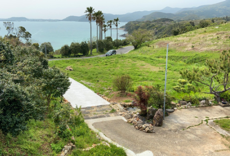 宿泊場所の両隣は五島の名産である椿の山、裏手は木々と畑との静かな空間、前方は富江湾を望む穏やかな入江となっている海の景色。 一日中太陽が当たるこの場所は、富江湾に沈む夕日で一日が終わり、昇る朝日から一日が始まります。